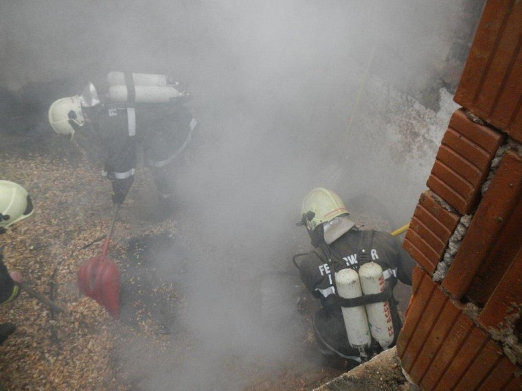 Der Dachstuhl des Hackschnitzelbunkers war bereits vollkommen abgebrannt und eingestürzt, das Hackgut gloste und starker Rauch stieg auf. Eine Feuermauer zwischen Bunker und Wirtschaftsgebäude verhinderte ein Übergreifen der Flamen auf das angrenzende Wirtschaftsgebäude.