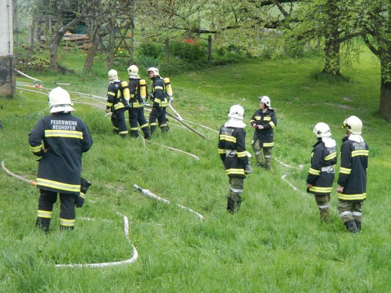 Aufgrund der geographischen Gegebenheiten mussten insgesamt etliche hundert Meter Zubringerleitungen aufgebaut werden. Hier hat sich das oft geübte Zusammenspiel der einzelnen Feuerwehren wieder einmal bewährt.