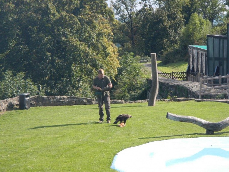 Nach einer Pause im Gasthof Auer machten wir uns auf den Weg zur nahe gelegenen Riegersburg. Wahlweise zu Fuß oder per Seilbahn konnte der Festungsberg erklommen werden. Oben warteten bereits die Greifvögel der Falknerei auf ihre Vorführung. Steinadler, Gänsegeier und Co zeigten uns ihre Kunststücke und die Falknerin informierte uns über die jeweiligen Vögel und deren Eigenschaften.