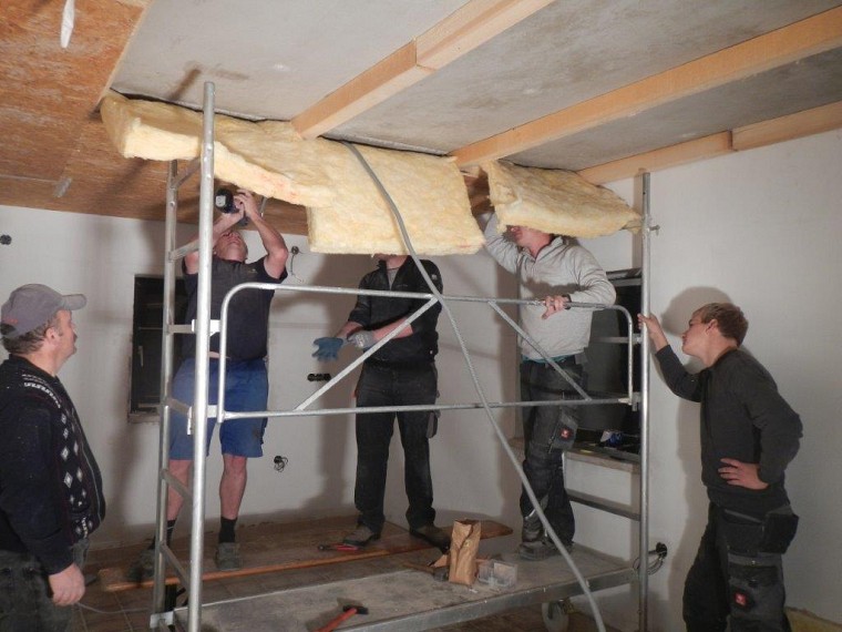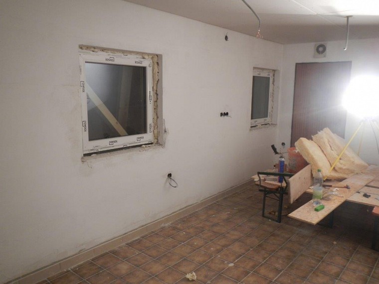 Im Aufenthaltsraum wurden neue Fenster eingesetzt und die Decke isoliert. Als nächstes stehen Spachtel- und Malerarbeiten an, dann kann der neue Küchenblock kommen. Danach geht es im Obergeschoss weiter, hier sind mittlerweile die Malerarbeiten ebenfalls fast abgeschlossen. Als letztes wird oben ein Raum als Büro abgeteilt.