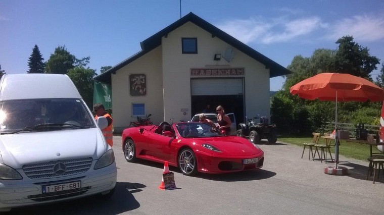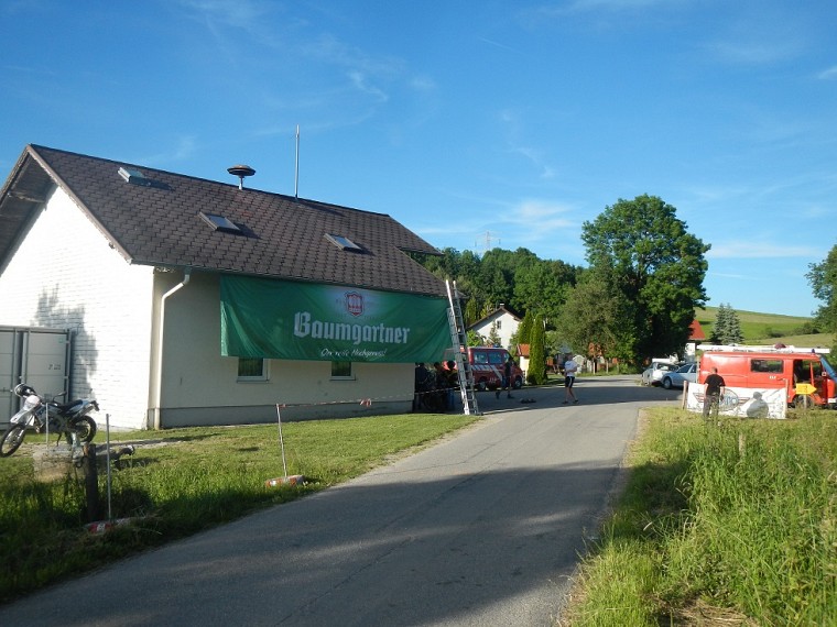 Bereits am Freitag begannen bei unserem Feuerwehrhaus die Aufbauarbeiten. Es mussten vor allem wieder die Schläuche zum Bewässern der Bahnen verlegt werden. Da der Wetterbericht strahlenden Sonnenschein versprach, war das Bahnspritzen zur Unterdrückung der Staubentwicklung besonders wichtig. Es rollten auch schon die ersten Campingbusse der Rennteams an, die auf den Park- bzw. Campingplatz gelotst werden mussten.