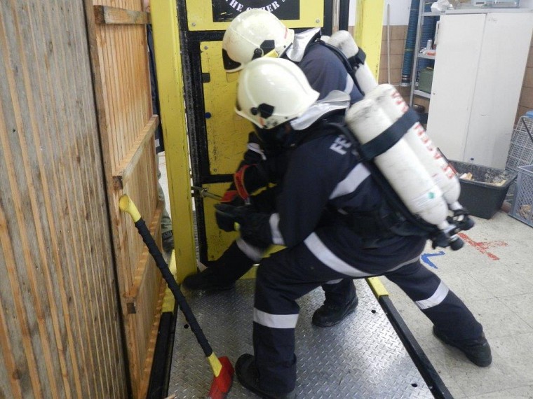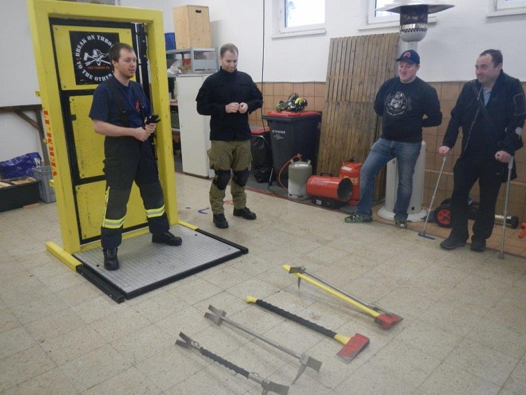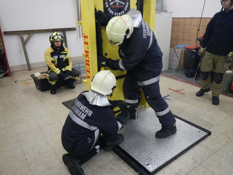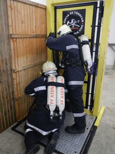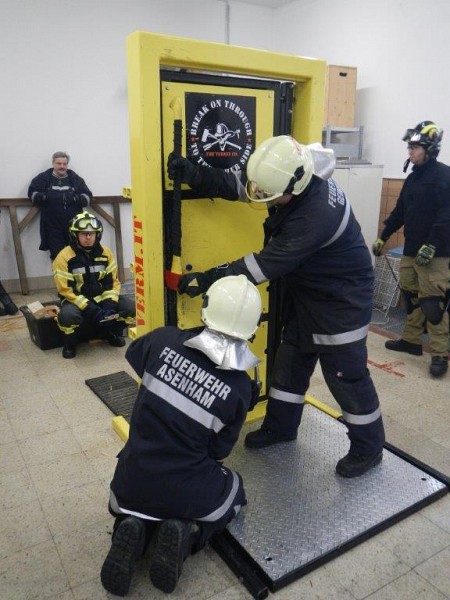 Unser BI Christian Frauscher hat Kontakt mit der Firma Heavy Resuce Germany hergestellt, die Schulungen für dieses Tool anbietet. Für diese Schulungen wird eine spezielle Übungs-Tür verwendet, die das Verhalten echter Türen sehr gut simuliert, aber trotzdem robust genug ist, um immer wieder aufgebrochen zu werden.