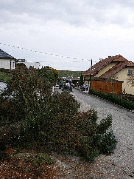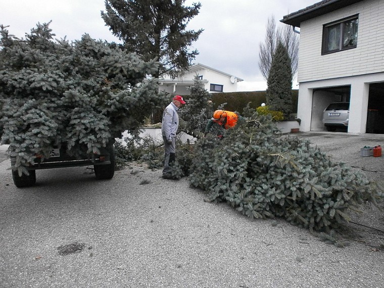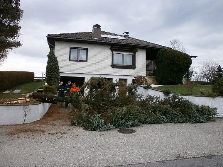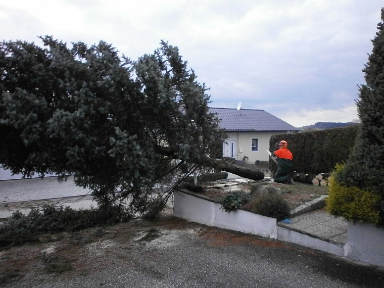 Bei unserem Ehrenkommandanten Martin Weidlinger mussten zwei Bäume gefällt werden.