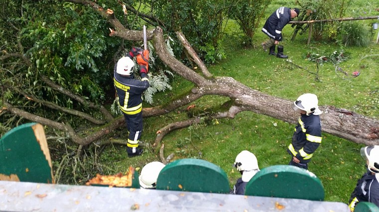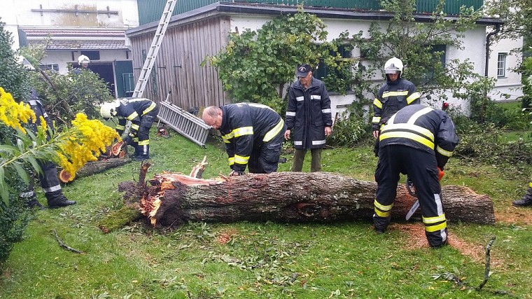 Ein aufmerksamer Feuerwehrkamerad der sich um ca. 23:00 Uhr auf dem Weg ins Feuerwehrhaus befand, bemerkte auf der B141 einen umgestürzten Baum. Nach Rücksprache mit der zuständigen Feuerwehr rückte die anwesende Mannschafft, die sich auf Bereitschaft befand, unverzüglich aus um diesen zu entfernen. In den folgenden Stunden mussten mehrerer Straßenabschnitte von umgestürzten Bäumen befreit bzw. bis am nächsten Tag gesperrt werden. Um 01:14 konnten die Einsatzbereitschafft wiederhergestellt werden.