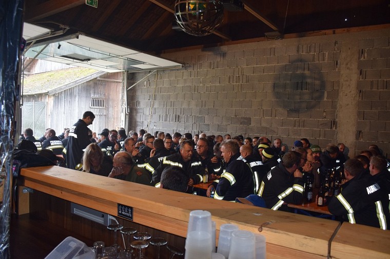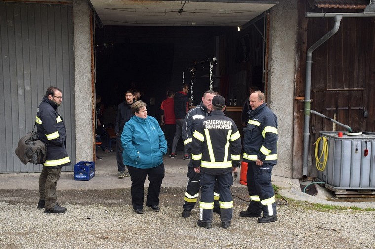 Nach Übungsende fand die Nachbesprechung im Rohbau statt, hierzu wurden beide Übungsschwerpunkte, welche zusätzlich von zwei Beoabachtern überwacht wurden, nachbesprochen und Verbesserungsmöglichkeiten aufgezeigt.