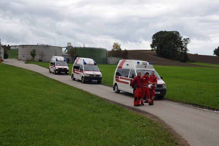 Parallel dazu traf auch das Rote Kreuz mit 4 Fahrzeugen ein. Nach einer kurzen Lagebesprechung gemeinsam mit dem Einsatzleiter der Feuerwehr, wurde der Triage und Behandlungsraum errichtet und mit der Behandlung der geborgenen Unfallopfer begonnen.