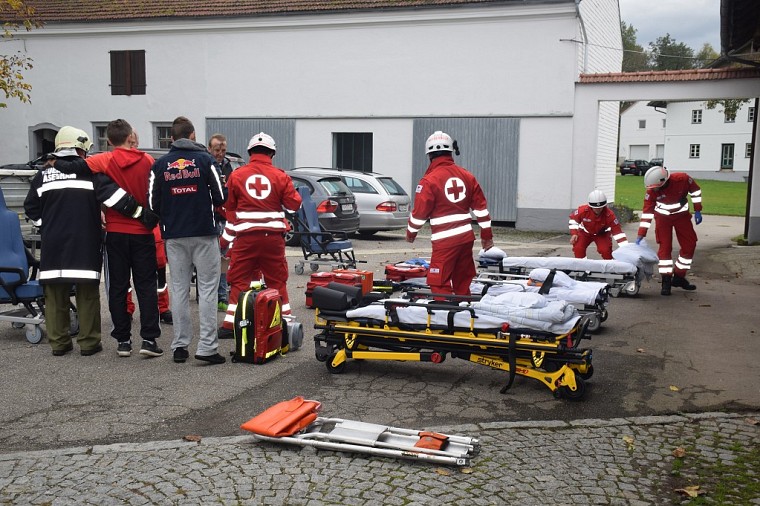 Insgesamt nahmen an der Übung 9 Feuerwehren (Aurolzmünster, Asenham, Blindenhofen, Eitzing, Mehrnbach, Neuhofen, Oberholz, Ried) mit 17 Fahrzeugen, 144 Personen und das Rote Kreuz mit 4 Rettungswagen an der Übung teil.