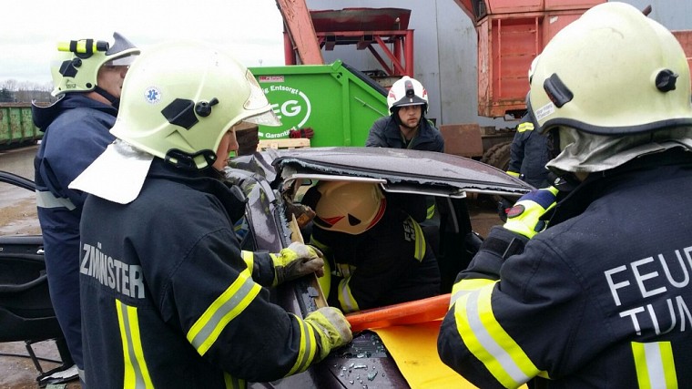 Bei diesem ganztägig abgehaltenen Seminar, wurde vormittags in einem kurzen theoretischen Teil die Grundlagen sowie neue Rettungstechnicken vermittelt. Am Nachmittag konnte diese Wissen am Schrottplatz der Firma REG, unterstützt durch Ausbilder von Weber-Rescue, praktisch umgesetzt werden. Der Fokus lag hier auf dem effektiven und sicheren Umgang mit dem hydraulischen Bergegerät, ebenso konnten verschiedene Akku-betriebene Geräte und Hilfsmittel getestet werden.