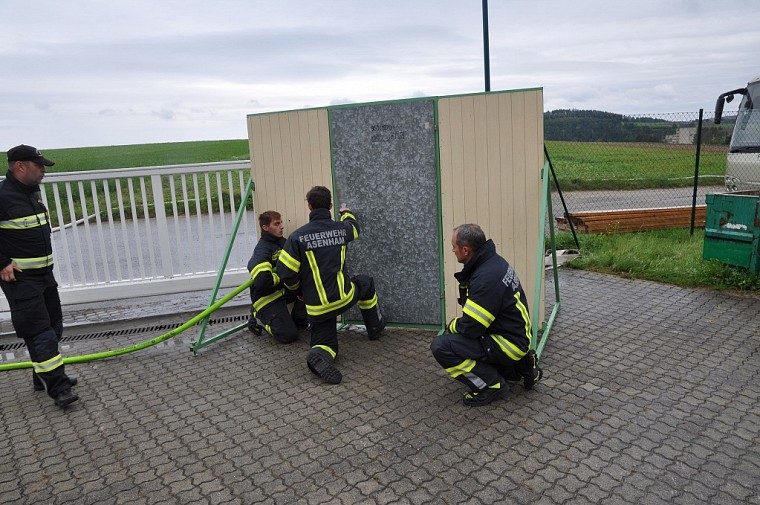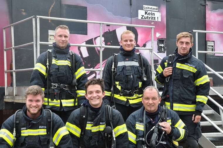 Nachdem beim Strahlrohrtraining der effektive Einsatz des Hochstrahlrohrs beim richtigen Türöffnen erprobt wurde, stand die Hitzegewöhnung im gasbefeuerten Container auf dem Programm. Die Höhepunkte bei dieser Übung spielten sich beim nachfolgenden Innenangriff ab.