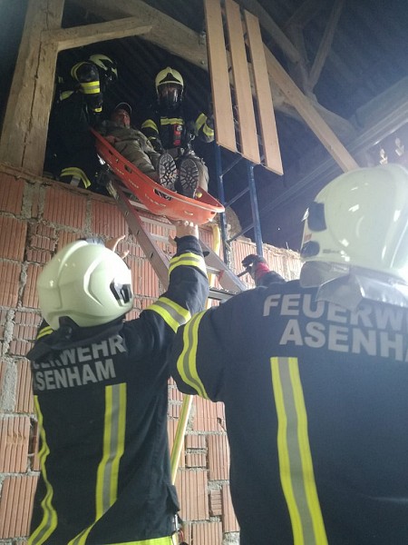 Unsere Wehr stellte einen AS-Trupp und nahm sich außerdem um den Transport der vermissten Personen ab der Rauchgrenze hin zur Rettung an.
