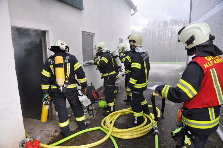 Übungsannahme war, dass es zu einem Brandausbruch im Zuge von Arbeiten in einer Werkstättengarage kam. Als Schwerpunkt der Übung galt es, eine unter einem KFZ eingeklemmte Person mittels Hebekissen und Unterbauzeug aus dem Brandraum zu retten.