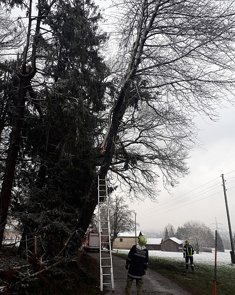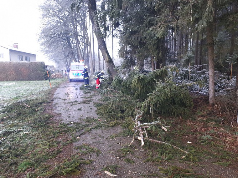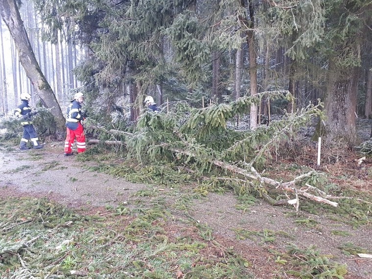 Dabei galt es Stämme und Äste von der Straße zu entfernen, sowie von einer Gartenhütte.