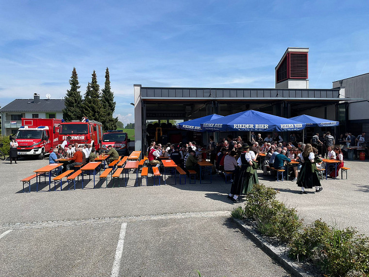 Ausgestattet mit Würstl, Getränken, Kaffee und Kuchen durften die Kameraden der Feuerwehren der Gemeinde Mehrnbach, die Musikkapelle und die Gemeindebevölkerung begrüßen.