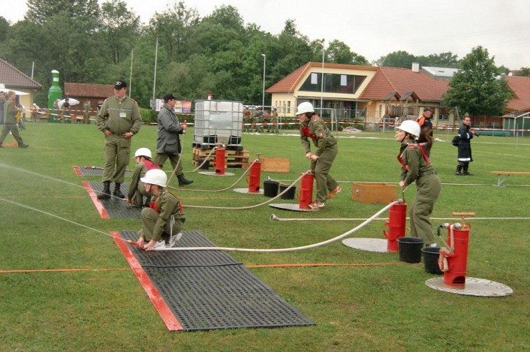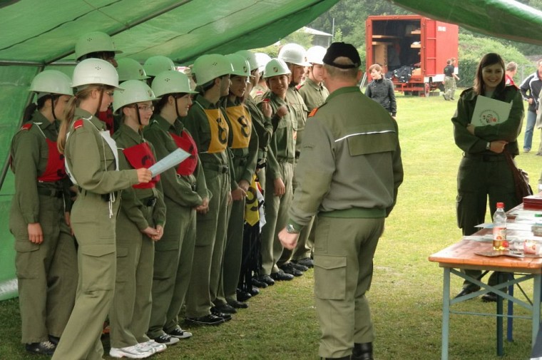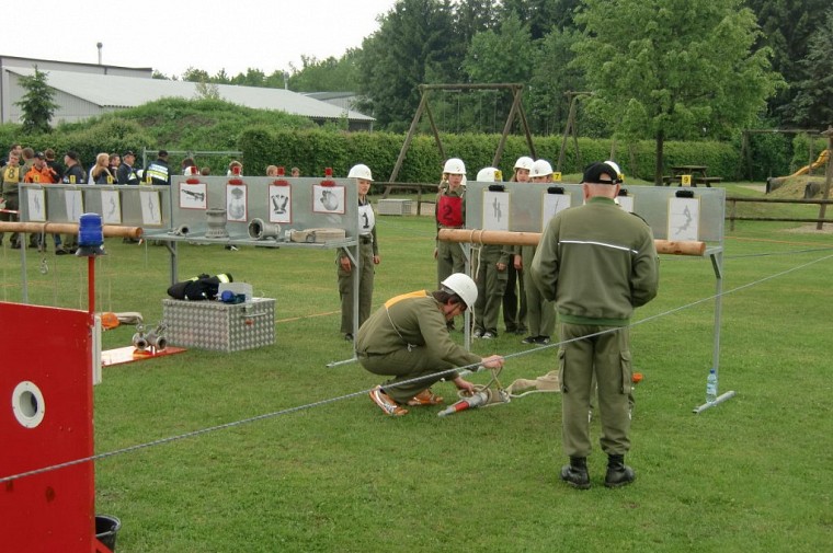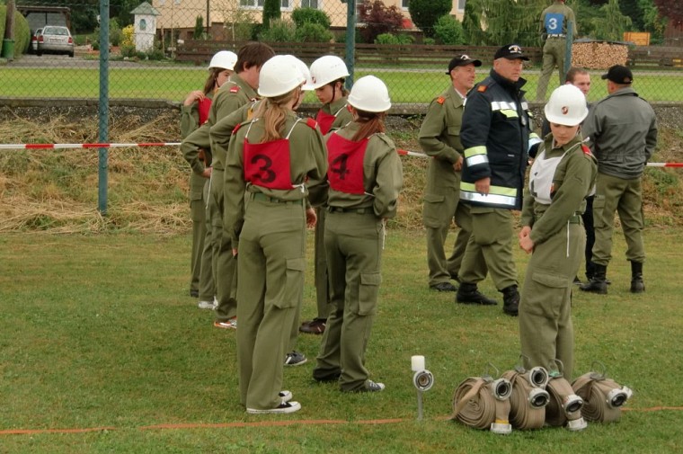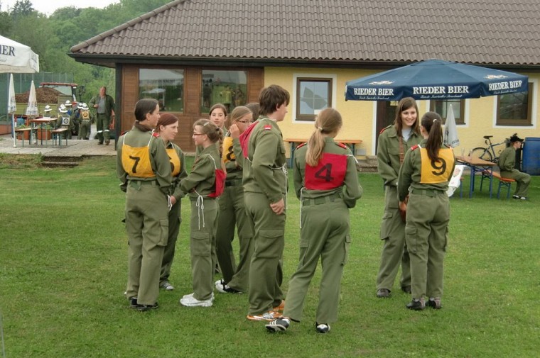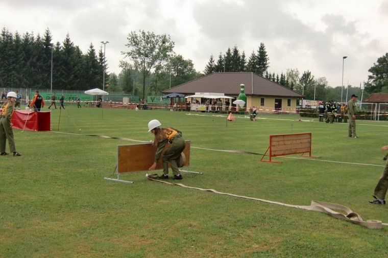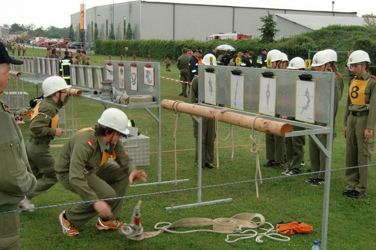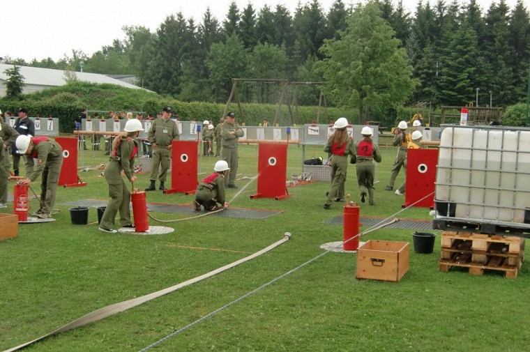 Die Aufgabe der Nr. 3 beim Staffellauf ist, einen gerollten C-Schlauch auf einer dafür vorgesehenen Platte abzulegen. Allerdings hat sich besagte Nr. 3 mit dem Vorbereiten des Schlauches etwas zu viel Zeit gelassen und schlicht den Start übersehen, weshalb sie nicht an ihrer Startposition stand - mit dieser unerwarteten Situation konfrontiert, entschied sich die Nr. 2 dazu, einfach durchzulaufen (die Nr. 3 praktisch auszulassen). Dies wurde zunächst mit der Disqualifizierung geahndet. Dank dem beherzten Eingreifen unserer Jugendbetreuerin, konnte das Desaster noch verhindert werden und wir bekamen "nur" 20 Schlechtpunkte. Endergebnis: Rang 10.