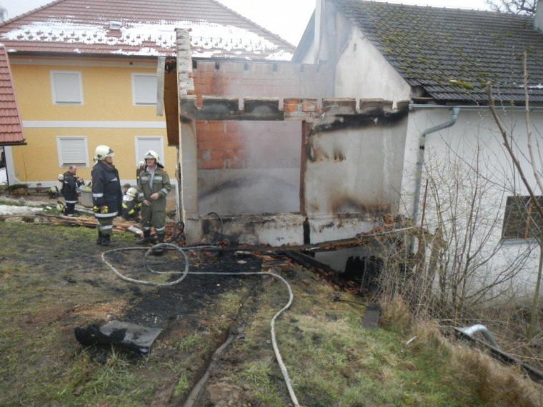 Der Dachstuhl des Hackschnitzelbunkers war bereits vollkommen abgebrannt und eingestürzt, das Hackgut gloste und starker Rauch stieg auf. Eine Feuermauer zwischen Bunker und Wirtschaftsgebäude verhinderte ein Übergreifen der Flamen auf das angrenzende Wirtschaftsgebäude.
