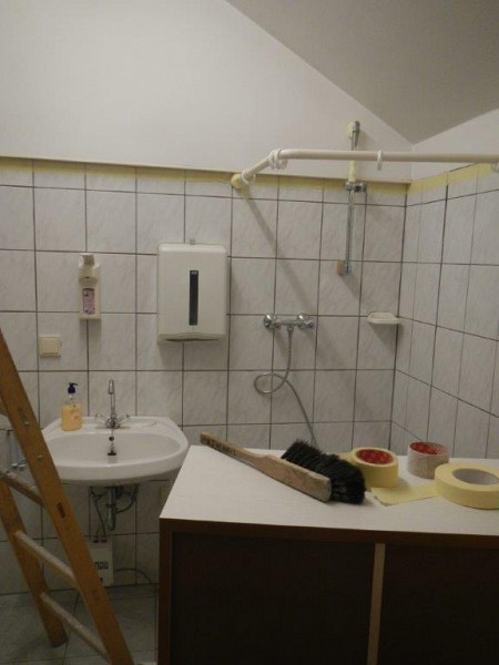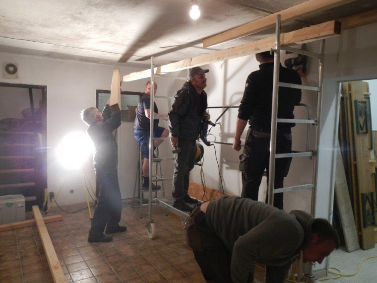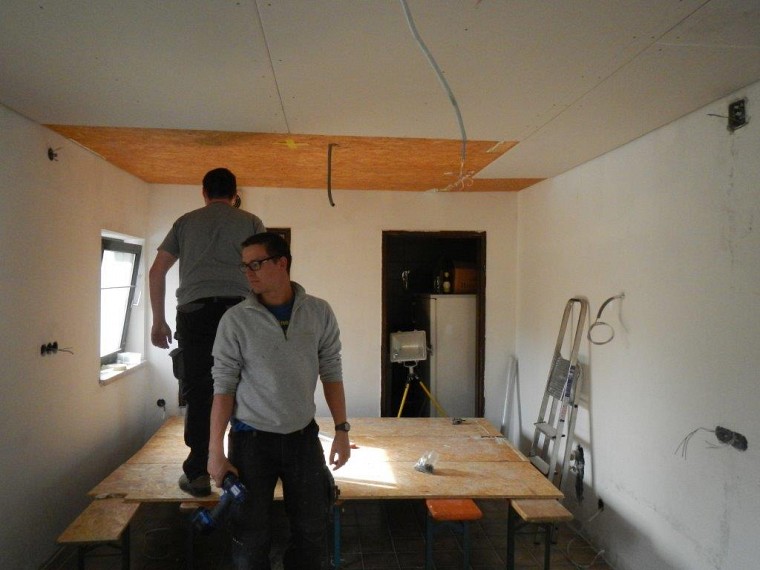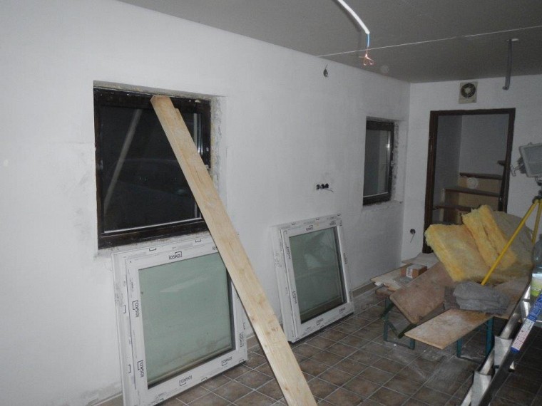 Im Aufenthaltsraum wurden neue Fenster eingesetzt und die Decke isoliert. Als nächstes stehen Spachtel- und Malerarbeiten an, dann kann der neue Küchenblock kommen. Danach geht es im Obergeschoss weiter, hier sind mittlerweile die Malerarbeiten ebenfalls fast abgeschlossen. Als letztes wird oben ein Raum als Büro abgeteilt.