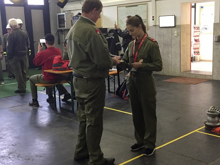 Unser Feuerwehrmitglied Brem Melanie nahm daran teil und konnte alle theoretischen und praktischen Stationen mit bravour meisten. Somit konnte bei der Schlussveranstaltung dass begehrte Abzeichen entgegengenommen werden.