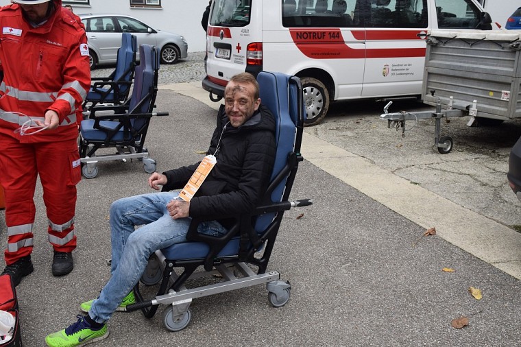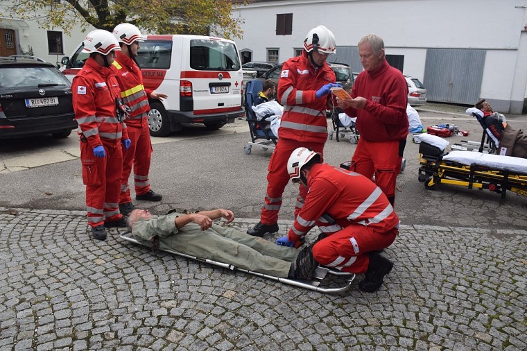 Parallel dazu traf auch das Rote Kreuz mit 4 Fahrzeugen ein. Nach einer kurzen Lagebesprechung gemeinsam mit dem Einsatzleiter der Feuerwehr, wurde der Triage und Behandlungsraum errichtet und mit der Behandlung der geborgenen Unfallopfer begonnen.