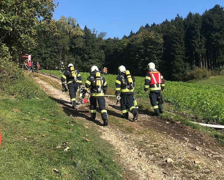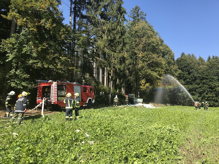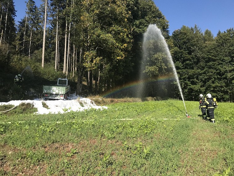 Übungsannahme war ein in Brand geratener Traktor, welcher sich unmittelbar neben einem Wald befand. Der Löschangriff wurde unter schwerem Atemschutz und unter Zuhilfenahme von Mittelschaum vom Tank Mehrnbach durchgeführt. Zudem galt es den Wald vor dem Übergreifen der Flammen zu schützen. Zeitgleich wurde die Wasserversorgung von zwei Saugstellen hergestellt.