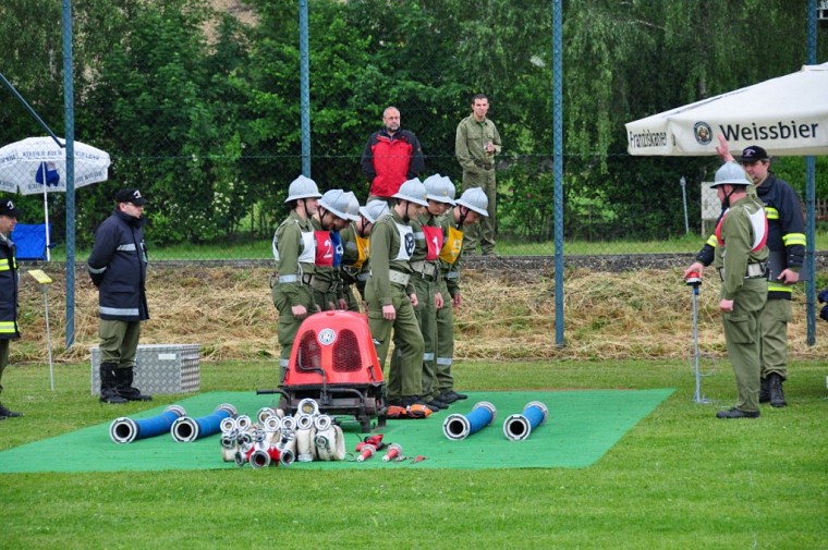 Die Aufgabe der Nr. 3 beim Staffellauf ist, einen gerollten C-Schlauch auf einer dafür vorgesehenen Platte abzulegen. Allerdings hat sich besagte Nr. 3 mit dem Vorbereiten des Schlauches etwas zu viel Zeit gelassen und schlicht den Start übersehen, weshalb sie nicht an ihrer Startposition stand -  mit dieser unerwarteten Situation konfrontiert, entschied sich die Nr. 2 dazu, einfach durchzulaufen (die Nr. 3 praktisch auszulassen). Dies wurde zunächst mit der Disqualifizierung geahndet. Dank dem beherzten Eingreifen unserer Jugendbetreuerin, konnte das Desaster noch verhindert werden und wir bekamen "nur" 20 Schlechtpunkte. Endergebnis: Rang 10.